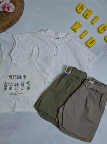 ست سه تیکه شومیز وتاپ وشورتک دخترانه