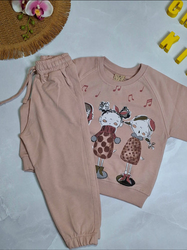 ست راحتی طرح دختر صورتی دورس دو نخ
