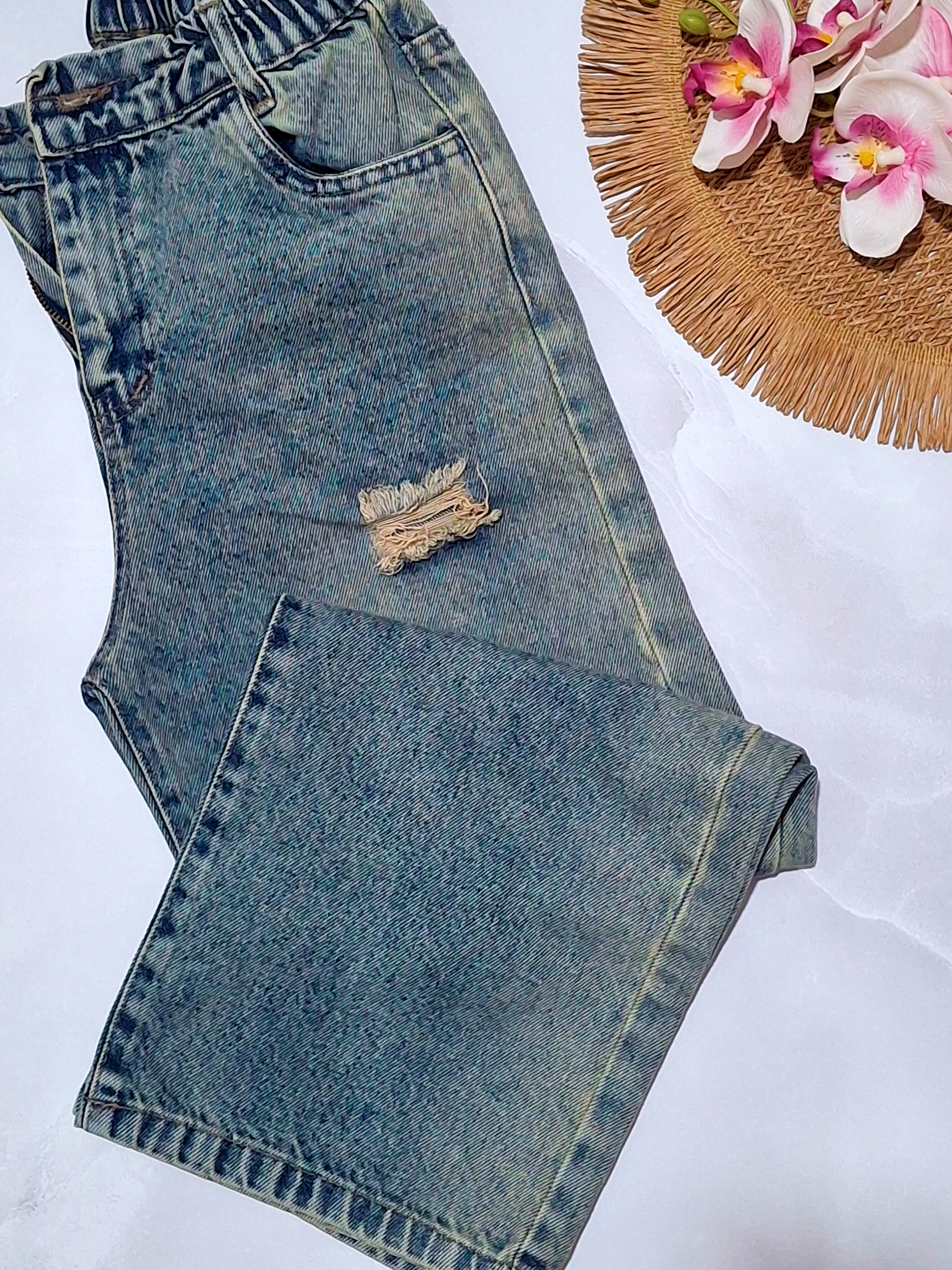 شلوارک مام دم پا پاکتی جین دخترانه
