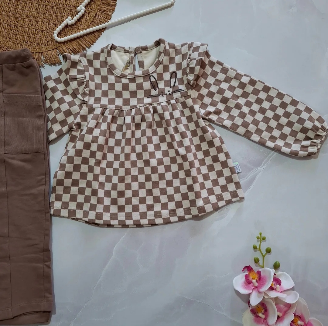 ست دوتیکه دخترانه شطرنجی دورس گرم بالا