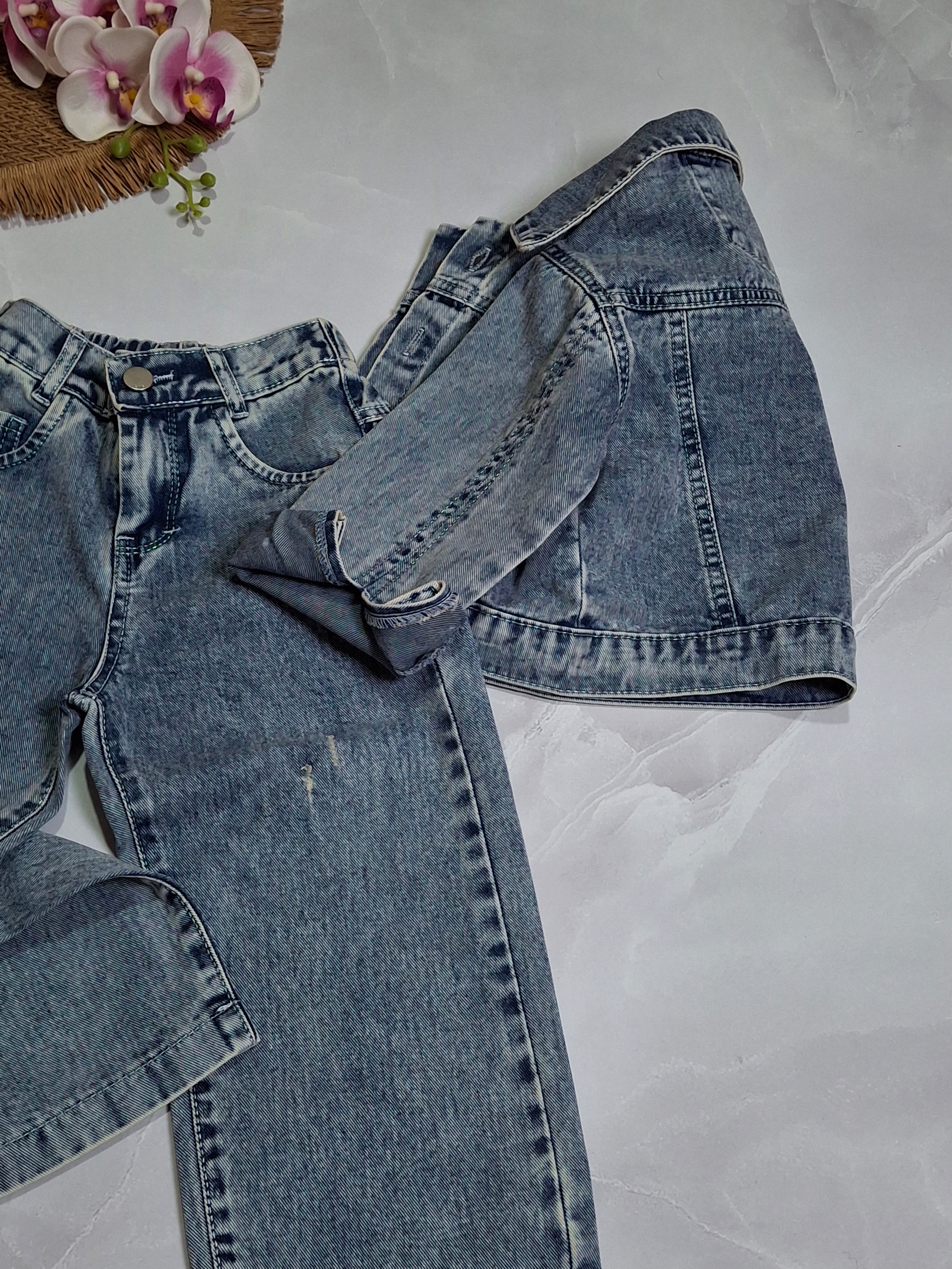 ست دخترانه/کت کراپ وشلواربگ/دکمه فلزی/پشت شلوار کشی ودکمه وزیپ خور ✅کیفیت بسیار عالی وتضمینی ✅یک تا دو سانت اختلاف در اندازه گیری رو لحاظ کنید ✅در انتخاب وثبت سفارش دقت فرمایید