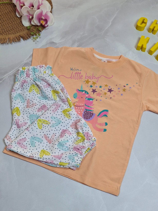 ست تیشرت وشلوارک دخترانه نخ پنبه